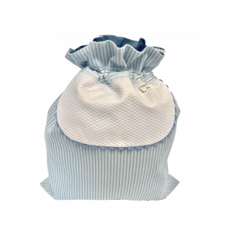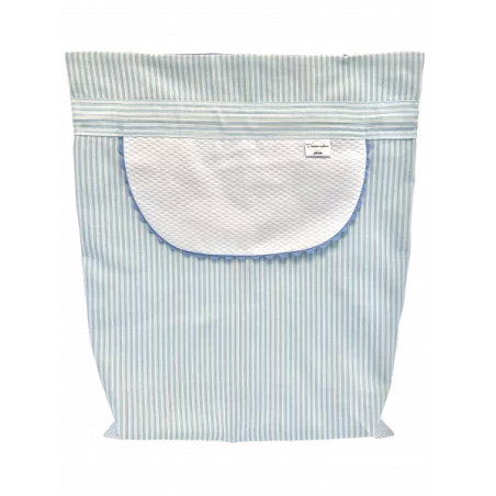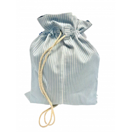 Craquez pour ce magnifique sac de crèche à rayures bleues. Fait main et made in France, il est idéal pour ranger toutes les affaires de bébé, pour aller à la crèche où chez la nounou. Très pratique, il séduit déjà de nombreux parents.