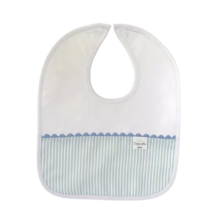 Craquez pour ce magnifique bavoir à rayures bleues. Il est votre plus fort allié pour protéger les habits de bébé lors de son repas. Sur le devant, vous trouvez une ligne de croquet et un empiècement rayé, le dos est doublé d’éponge pour garder bébé au sec. Fait main et made in France, nos bavoirs ont une empreinte carbone bien inférieure à un bavoir classique.