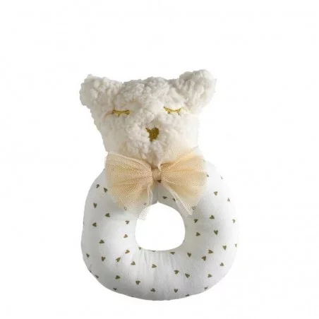 Adoptez cet adorable hochet en forme de chat, grâce son corps rond parsemé de cœurs et sa tête toute douce aux poils frisés, il séduit déjà petits et grands. Le doux bruit des grelots, intégré à ce hochet le rend indispensable pour bébé et pour stimuler ses sens.