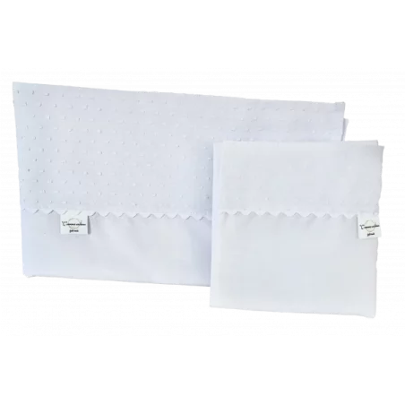 Craquez pour ces draps chics et élégants qui donneront une ambiance douce et chaleureuse à la chambre de bébé. Joliment ornés d’une bande de tissu plumetis blanc et d’une bande de croquet blanc, ils sont idéals pour les douces nuits de bébé. Taille universelle, ils s’adapteront à tous les types de lits. Fait main et made in France, c’est un cadeau idéal dès la naissance.