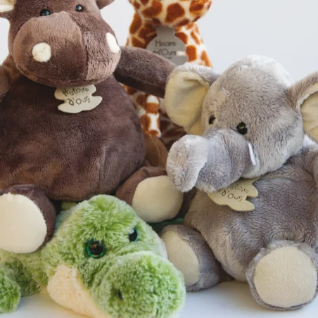 Petit éléphant tout doux de la marque Histoire d’Ours. Il fait partie d’une grande famille d’éléphants doux et amusant avec leur trompe facile à attraper.