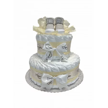 Gâteau de couches et ses chaussettes beiges