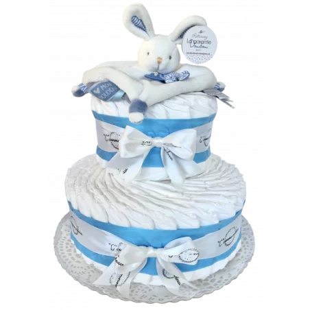 Une naissance, une Babyshower, optez pour ce gâteau de couches et son lapin bleu.