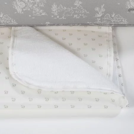 un tapis à langer de voyage est également fourni avec le sac à langer toile de jouy.
