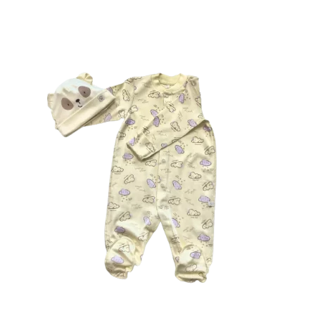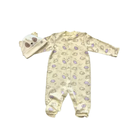 Pyjama Et Bonnet Nuages 0-3 Mois 100 % Coton – Bembi