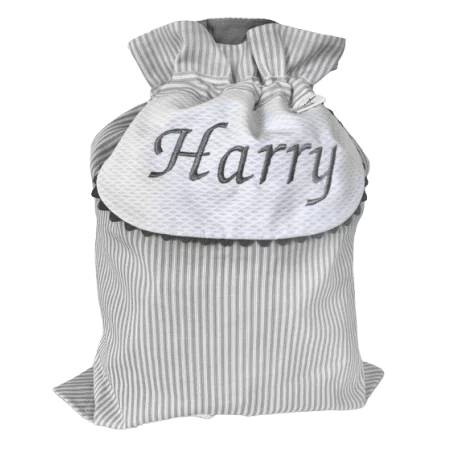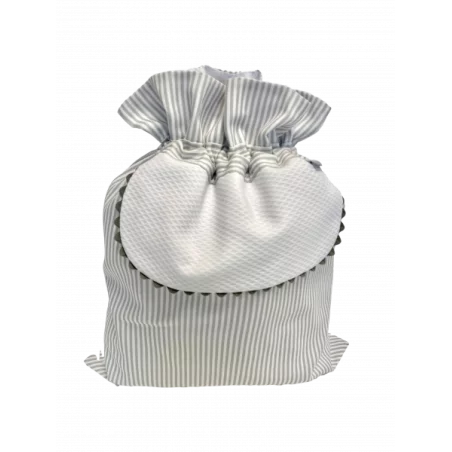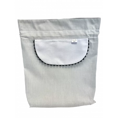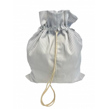 Le sac de crèche est très utile, à l’arrivée de bébé, lors de ses premiers jours à la crèche ou chez la nounou, pour emmener les affaires de bébé en balade… Son utilité et sa praticité séduisent déjà de nombreux parents. Nos sacs de crèches sont à rayures roses, bleues, grises ou vertes, ils sont fait main et made in France. L’empiècement sur le devant vous permet de personnaliser le sac avec prénom du bébé. La dimension des sacs, suffit amplement pour ranger toutes les affaires de bébé, doudou, biberon, couches, sucette, bavoir, vêtements de rechange, jouets…