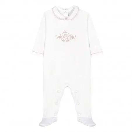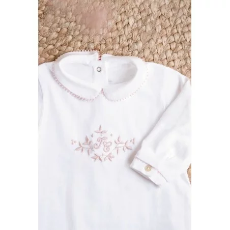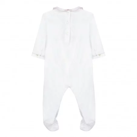 Le pyjama lĂ©ger blanc Feuille de lin de la marque Tartine et Chocolat permet Ă l’enfant de passer des nuits confortables et emplies de rĂŞves. Votre bĂ©bĂ© sera tout mignon dans ce pyjama au style rĂ©tro-chic avec la broderie ancienne en vieux rose.